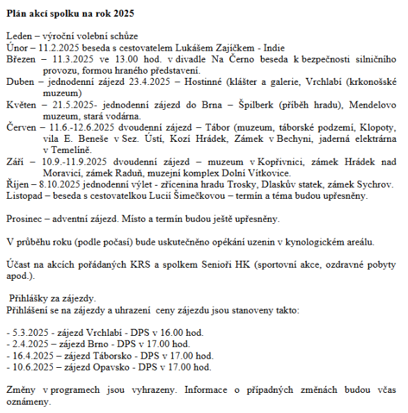 Plán akcí spolku na rok 2025